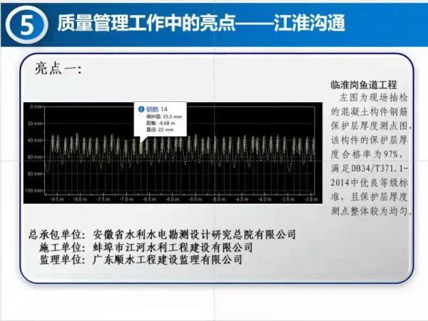 8月17日,引(yin)江濟淮集糰(tuan)公司(si)召(zhao)開8月(yue)份(fen)質(zhi)量安全(quan)視頻會,會(hui)上,蚌埠江(jiang)河公(gong)司(si)承(cheng)建的(de)臨(lin)淮崗(gang)魚(yu)道工(gong)程(cheng)混凝土(tu)鋼筋保(bao)護(hu)層作爲亮(liang)點(dian)在視(shi)頻(pin)會(hui)上(shang)交流。