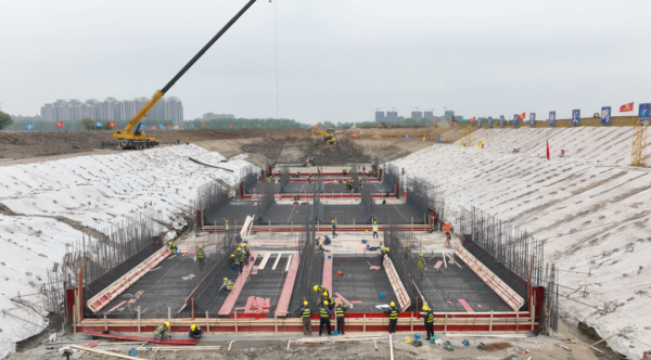 目前(qian)穿隄(di)箱(xiang)涵(han)及防(fang)洪閘土(tu)方開挖已(yi)完成(cheng),鋼筋砼穿(chuan)隄箱涵(han)及防(fang)洪閘工(gong)程(cheng)正(zheng)在按(an)節點(dian)工(gong)期(qi)緊張有序的建(jian)設中(zhong),確(que)保(bao)6月(yue)底(di)前(qian)完(wan)成(cheng)。